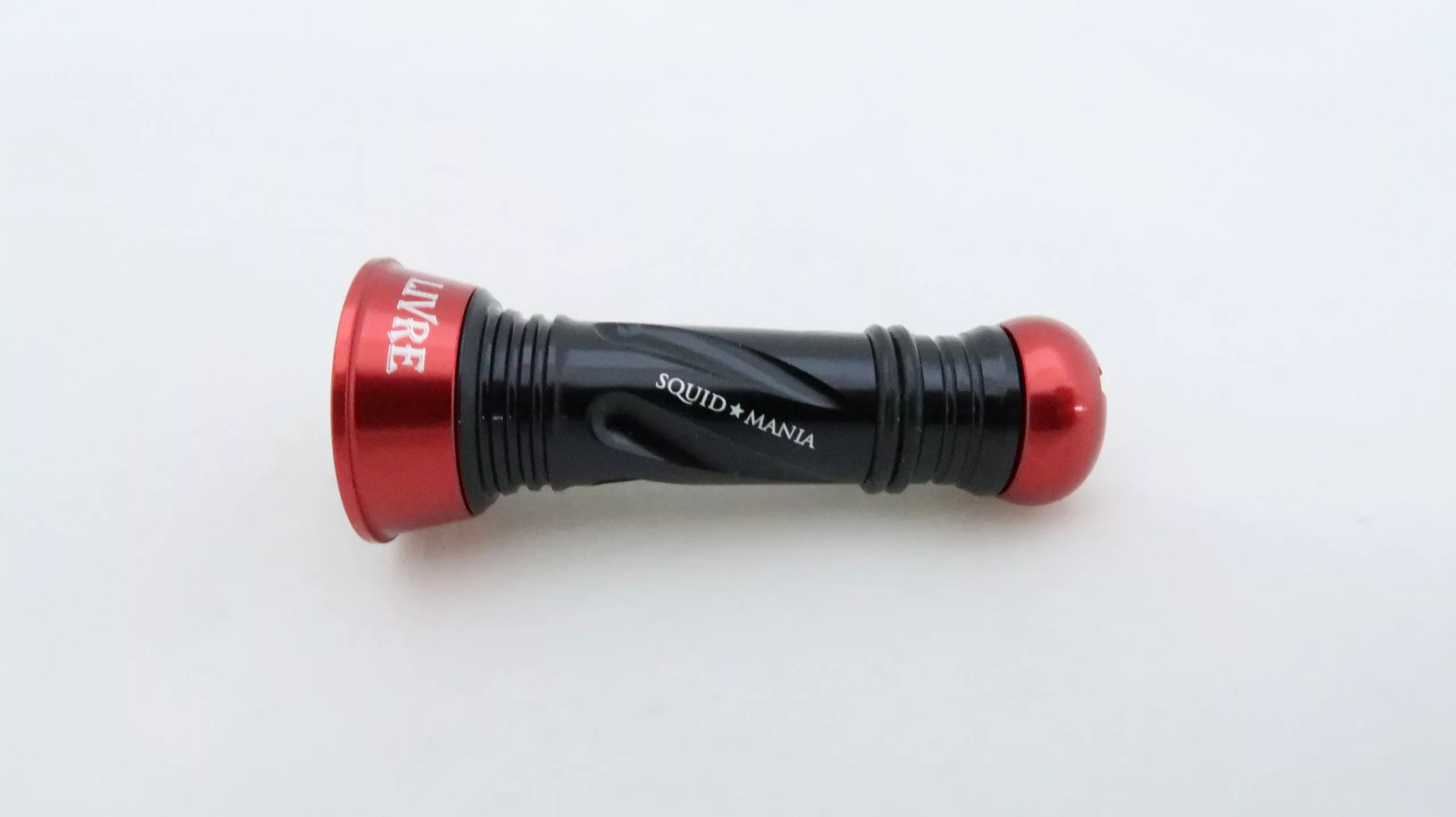 A limited edition Livre X Squid Mania custom balancer can be attached to the reel for the purpose of being of control the centre of gravity for the reel. It is a counter weight for the handle weight which leads to better balance and less wobble.
