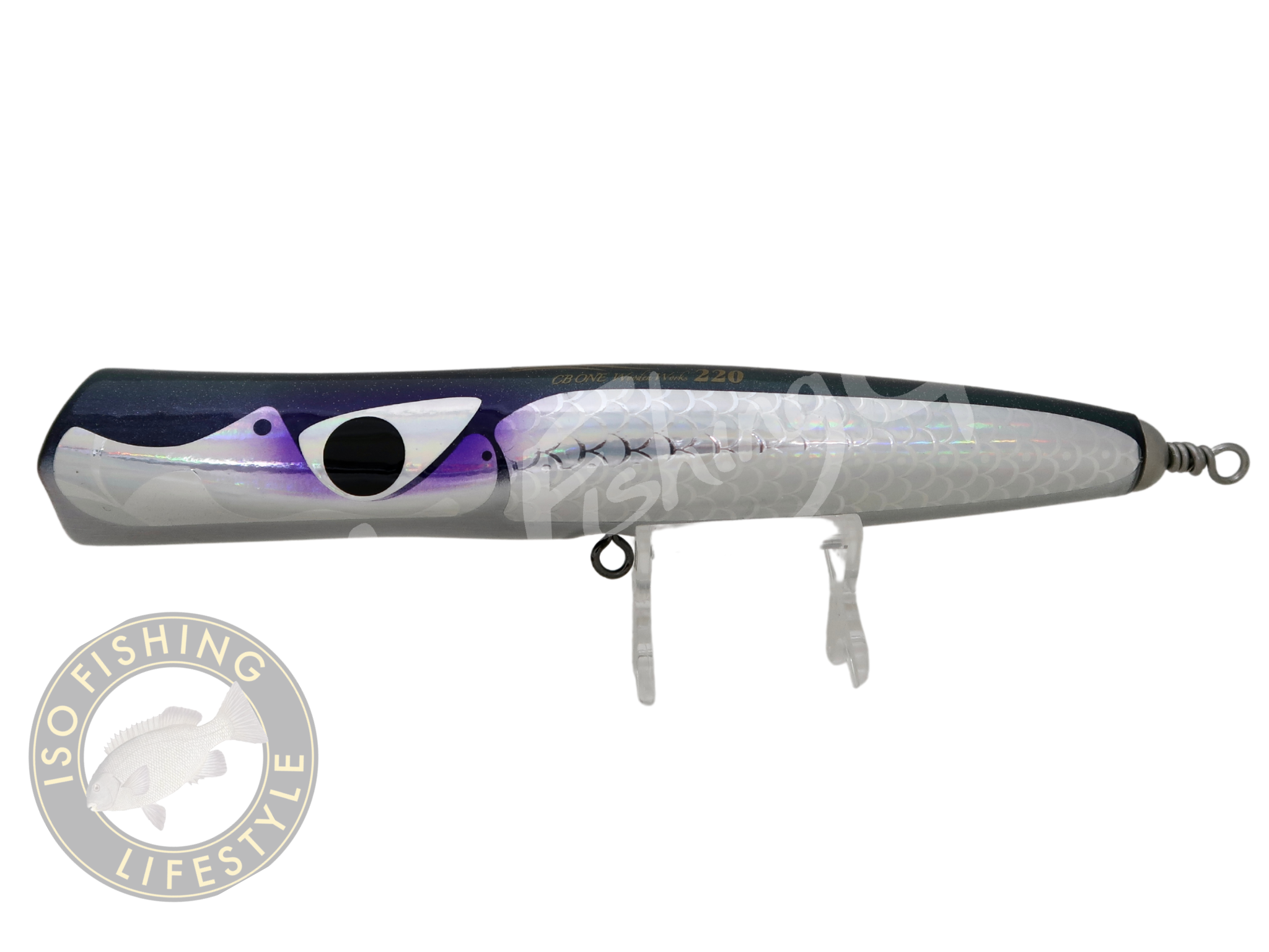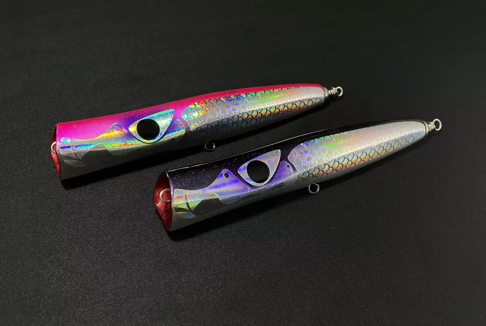 Bazoo, a popping popper that creates a large amount of bubbles appealing strongly to the target with a heavy pop sound. The columnar shape ‘ that reduces air resistance hits the longest distance of a CB One’s wooden lures. The unique cup shape enhances the amount of bubbles and water entanglement, and it is easy to reliably decide the swimming from the first action even under rough water surface.Â