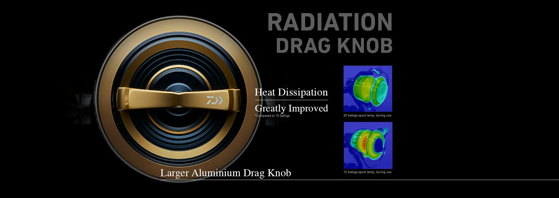 Improvements have also been made to the spool & drag assembly, where drag pressures have been increased to an astounding 25/30kg. Limited by the spool capacity, Daiwa engineers created a new drag stack, increasing the number of washers to deliver ten times the drag durability compared to 15 Saltiga. A newly designed aluminium Radiation Drag Knob delivers improved cooling & heat dissipation compared to 15 Saltiga thanks to its aluminium construction and increased size compared to 14 Expedition. A newly designed ABS Longcast lip design offers improved casting performance and enhanced line management. A noticeable lack of porting and a unique under-side lip in the spool design is another deliberate strategy to minimise water intrusion under the spool.