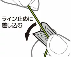 A line keeper that can fix the line to the slit part of the main body with one touch. Compact shape made of rubber that does not scratch the reel or line. It is also convenient for fastening the line that has passed through to the top guide when storing or moving the reel. A float type that floats even when dropped in water.