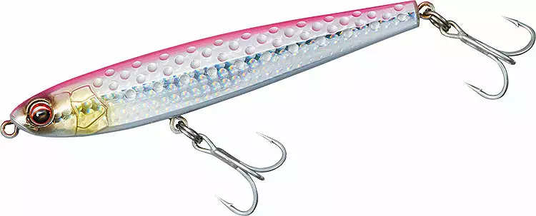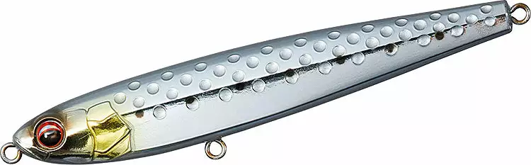 Break Through is the sinking stickbait of the Shore Spartan range. As with all Shore Spartan baits, the unique dimpled side is the first thing to notice. This dimpled design not only acts like a golf ball through the air, aiding the lure to track straight and true, it also aids the baits motion subsurface, allowing the Break Through to be retrieved faster than comparable baits without breaking the waters’ surface, a key trait for targeting high speed pelagics.