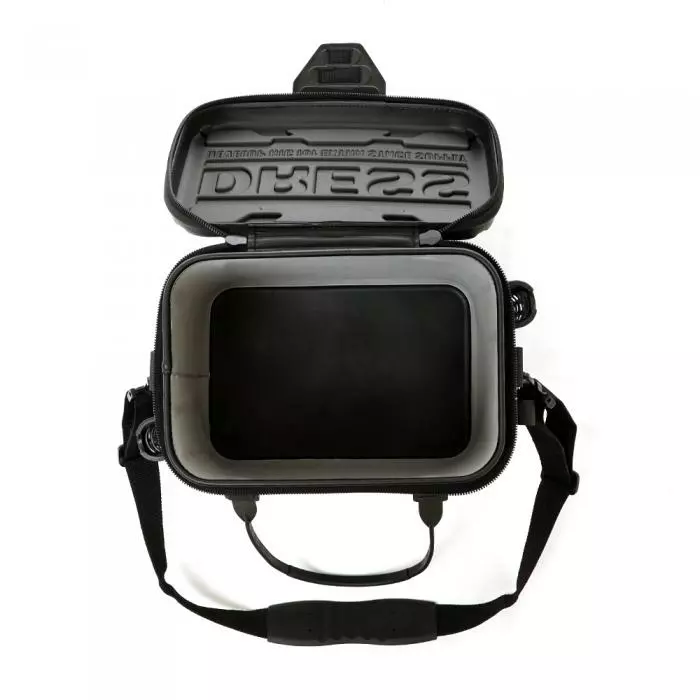 The hard type upper lid with dress logo can be opened and closed with a double chuck and Velcro flap!