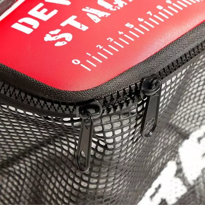 ・ the urethane mesh side is folded in half with the inner side, and the buckle of the belt is stopped to make it compact.
