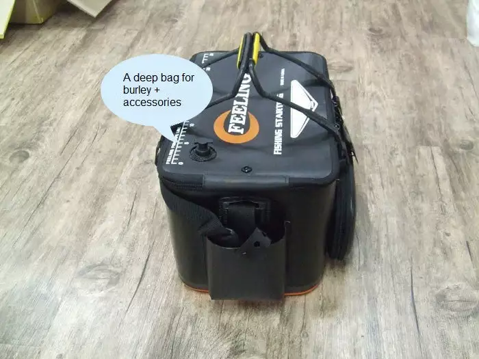 There is also an extra compartment on the front end of the burley bag allowing for accessories. A bait box also clips onto the side of the burley bag making fishing so much easier. Why fish so hard when fishing was meant to be fun and convenient?