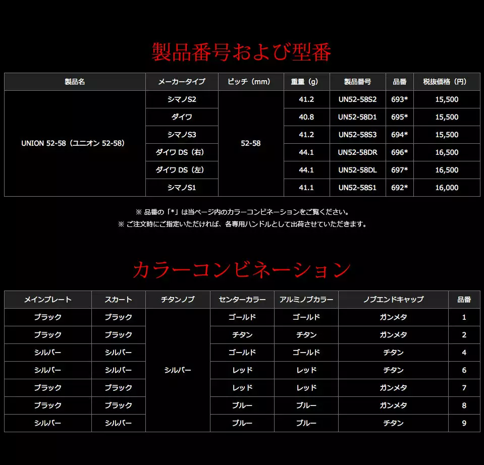 | Size | UN52-58D1/6951, UN52-58D1/6954, UN52-58D1/6952, UN52-58S2/6931, UN52-58S2/6932 |