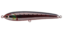 The latest stickbait by Maria Japan, the Rapido. The Rapido has an irregular rolling action that has an unique swimming action that is effective when there isn’t much bait fish around or when the action is quiet. The lure has been designed for casting off the rocks for species such as salmon, bonito, kingfish, tuna and many more species. Casting has been tested with the lure and can be casted up to a max of 80m from the shore.