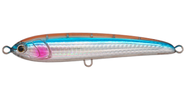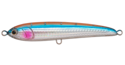 The latest stickbait by Maria Japan, the Rapido. The Rapido has an irregular rolling action that has an unique swimming action that is effective when there isn’t much bait fish around or when the action is quiet. The lure has been designed for casting off the rocks for species such as salmon, bonito, kingfish, tuna and many more species. Casting has been tested with the lure and can be casted up to a max of 80m from the shore.