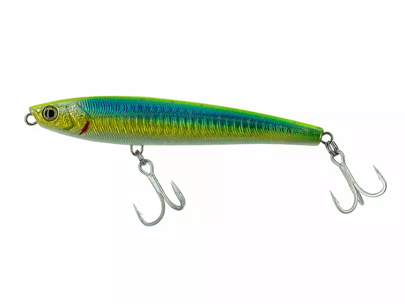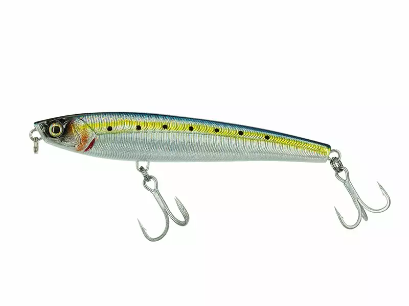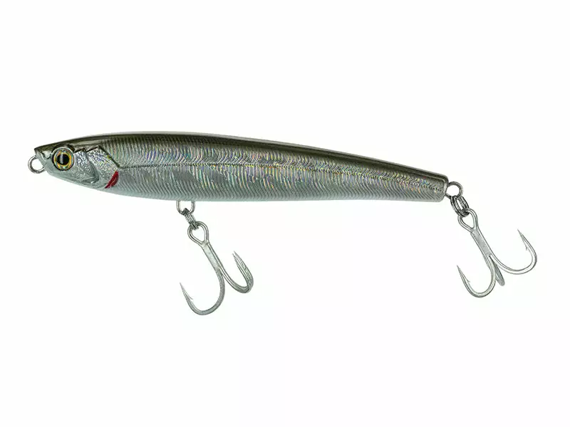 Stick Bait 120 Baitfish is an exclusive sinking “subwalk” bait. Thanks to the special hydrodynamic profile it allows to obtain a “walking the dog” movement under the surface of the water. The transfer of the mobile weight inside the bait is obtained through a special metal cylinder with a magnetic block in the front part; it guarantees long and precise castings and an optimal and ultra silent setting during the retrieval phase.