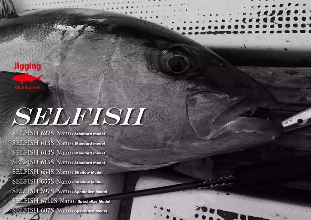 The blank on this rod is very strong but it doesn’t feel stiff. At a certain bend, the flexing force of the rod will ‘kick up’ the jig. It is also a very sensitive rod transmitting the movement of the current, action from the jig and response from the fish throughout the blank. The rear grip has been extended to cater for various styles of jerking. Words alone cannot describe the all qualities of this rod. Right from the hookup to landing the fish, the rod bends nicely with lots of lifting power and feels at home in your hands. Ripple Fisher proudly present the “SELFISH” series. Most remarkable characteristics of SELFISH series is operability with sharpness and lifting power hidden in fine and light stick. We present you 3 type of standard model, 2 type of shallow model for horizontal jigging and 1 type of specialized model for large kingfish or great amberjack.