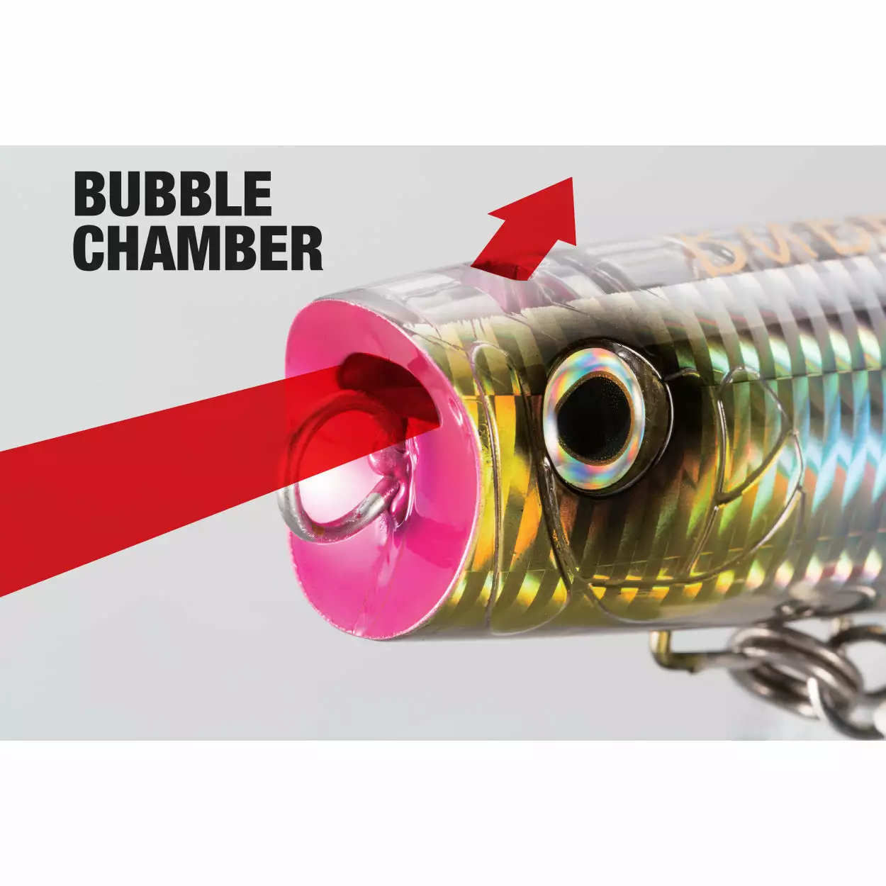 The internal AR-C loaded spring weight system means the Bubble Dip can be cast out of sight, but quickly regains its balance on splashdown, ready to be retrieved. The 3X Body design means it’s as tough as they come; delivering higher impact resistance and 3x the strength of comparable lures. And no pulled hook eyelets either, thanks to Shimano’s super strong Through Wire construction. Interestingly, there’s a third eyelet on the belly, which is perfect for attaching a swinging assist hook too.Â