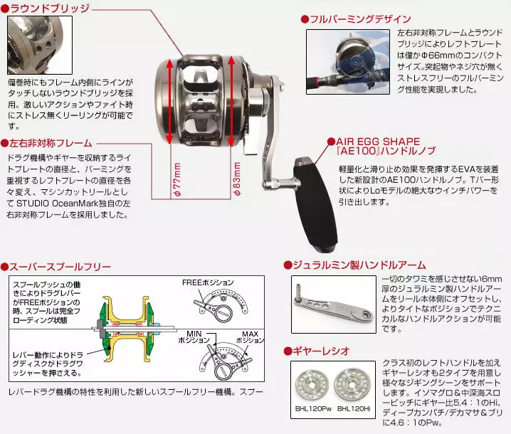 The handle shaft / knob shaft / spool shaft is the same material as BHL 50 of the upper model / the same diameter design, it is the bearing power that exceeds that class.