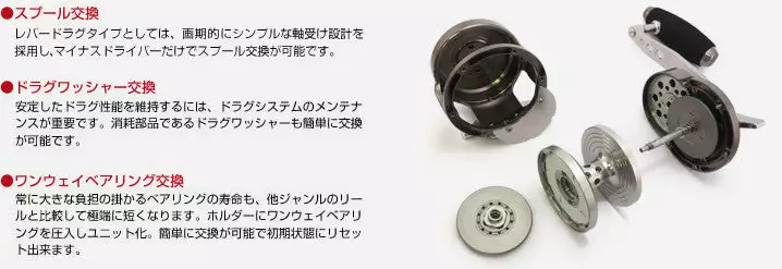 Compared to other types of reels, jigging reels bearings have a shorter life expectancy. So we made it easier to replace those bearings.